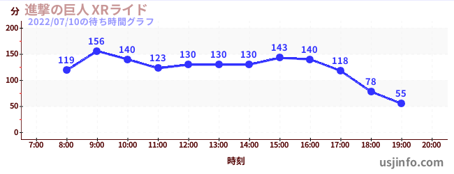 • 進撃の巨人 XRライド$B$N(B2022年07月10日の待ち時間
