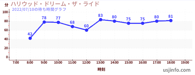 • ハリウッド・ドリーム・ザ・ライド$B$N(B2022年07月10日の待ち時間