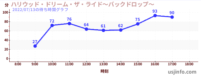 • ハリウッド・ドリーム・ザ・ライド〜バックドロップ〜$B$N(B2022年07月13日の待ち時間