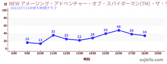 • NEW アメージング・アドベンチャー・オブ・スパイダーマン(TM)・ザ・ライド 4K3D$B$N(B2022年07月13日の待ち時間