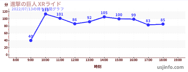 • 進撃の巨人 XRライド$B$N(B2022年07月13日の待ち時間