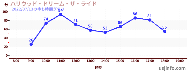 • ハリウッド・ドリーム・ザ・ライド$B$N(B2022年07月13日の待ち時間