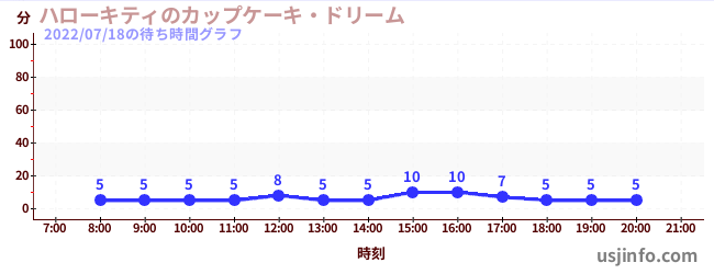 • ハローキティのカップケーキ・ドリーム$B$N(B2022年07月18日の待ち時間