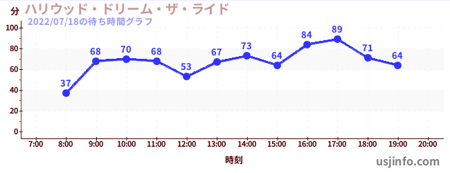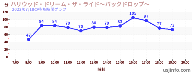 • ハリウッド・ドリーム・ザ・ライド〜バックドロップ〜$B$N(B2022年07月18日の待ち時間