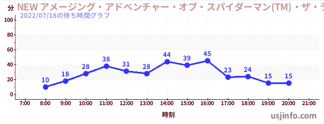 • NEW アメージング・アドベンチャー・オブ・スパイダーマン(TM)・ザ・ライド 4K3D$B$N(B2022年07月18日の待ち時間