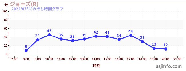 • ジョーズ(R)$B$N(B2022年07月18日の待ち時間