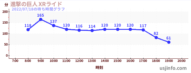 • 進撃の巨人 XRライド$B$N(B2022年07月18日の待ち時間