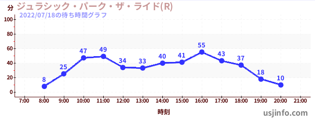 • ジュラシック・パーク・ザ・ライド(R)$B$N(B2022年07月18日の待ち時間