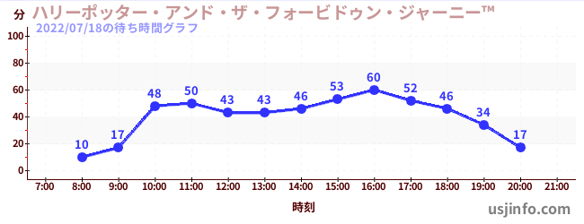 • ハリーポッター・アンド・ザ・フォービドゥン・ジャーニー™$B$N(B2022年07月18日の待ち時間