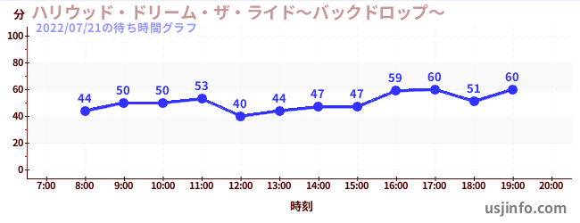 • ハリウッド・ドリーム・ザ・ライド〜バックドロップ〜$B$N(B2022年07月21日の待ち時間