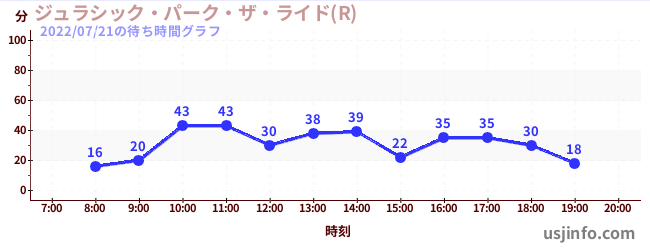 • ジュラシック・パーク・ザ・ライド(R)$B$N(B2022年07月21日の待ち時間