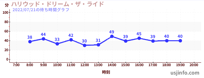 • ハリウッド・ドリーム・ザ・ライド$B$N(B2022年07月21日の待ち時間