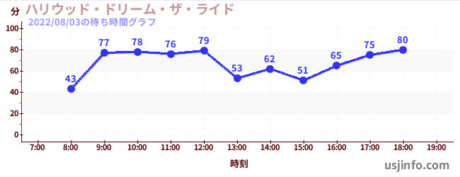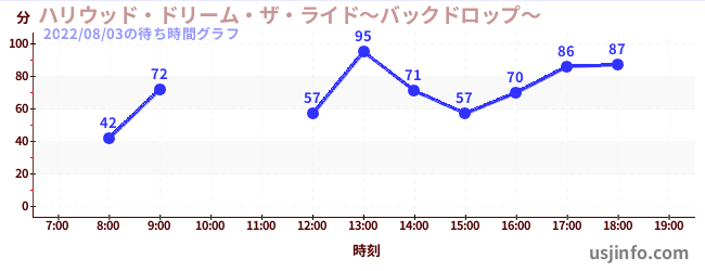 • ハリウッド・ドリーム・ザ・ライド〜バックドロップ〜$B$N(B2022年08月03日の待ち時間