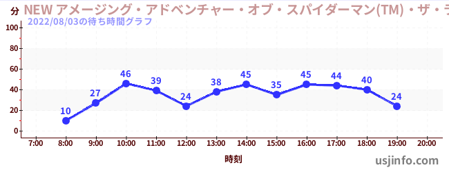 • NEW アメージング・アドベンチャー・オブ・スパイダーマン(TM)・ザ・ライド 4K3D$B$N(B2022年08月03日の待ち時間
