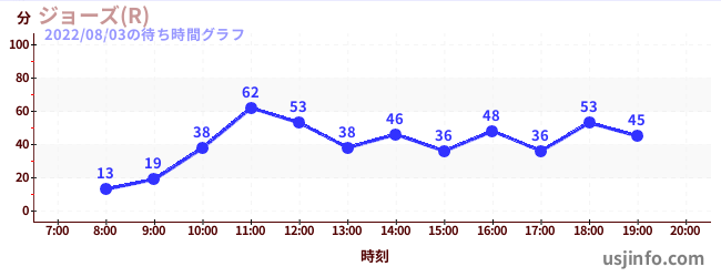 • ジョーズ(R)$B$N(B2022年08月03日の待ち時間