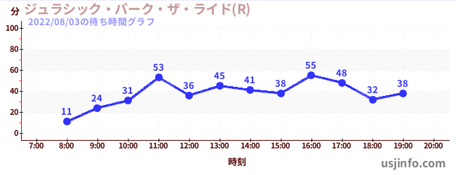 • ジュラシック・パーク・ザ・ライド(R)$B$N(B2022年08月03日の待ち時間