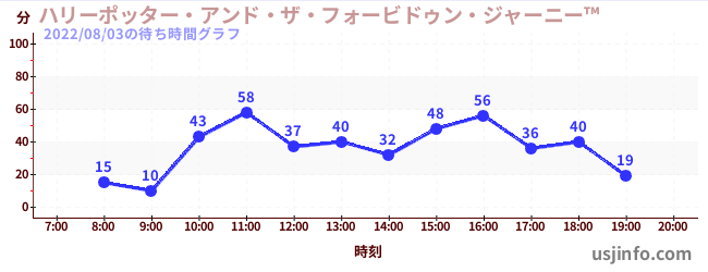 • ハリーポッター・アンド・ザ・フォービドゥン・ジャーニー™$B$N(B2022年08月03日の待ち時間