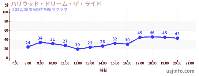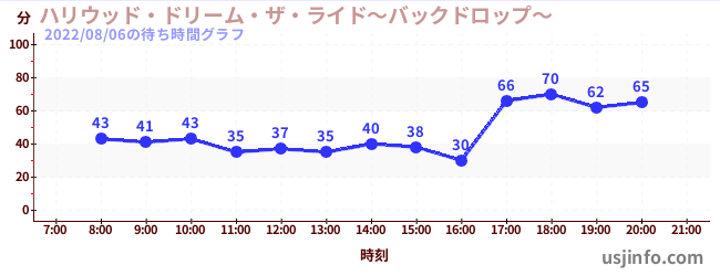 • ハリウッド・ドリーム・ザ・ライド〜バックドロップ〜$B$N(B2022年08月06日の待ち時間