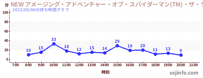 • NEW アメージング・アドベンチャー・オブ・スパイダーマン(TM)・ザ・ライド 4K3D$B$N(B2022年08月06日の待ち時間