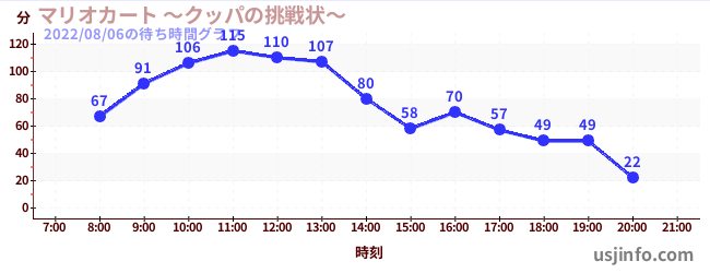• マリオカート ~クッパの挑戦状~$B$N(B2022年08月06日の待ち時間