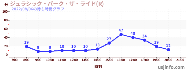 • ジュラシック・パーク・ザ・ライド(R)$B$N(B2022年08月06日の待ち時間