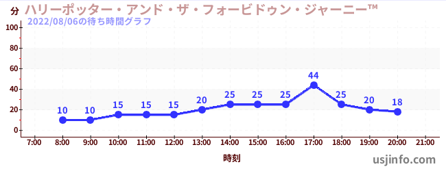 • ハリーポッター・アンド・ザ・フォービドゥン・ジャーニー™$B$N(B2022年08月06日の待ち時間