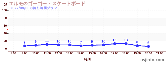 • エルモのゴーゴー・スケートボード$B$N(B2022年08月06日の待ち時間