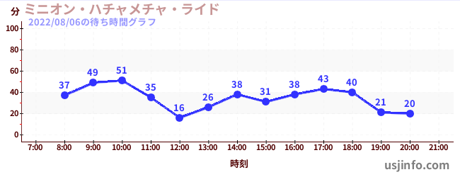 • ミニオン・ハチャメチャ・ライド$B$N(B2022年08月06日の待ち時間