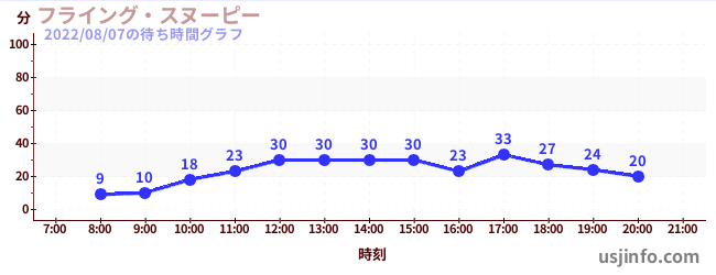 • フライング・スヌーピー$B$N(B2022年08月07日の待ち時間