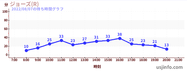 • ジョーズ(R)$B$N(B2022年08月07日の待ち時間