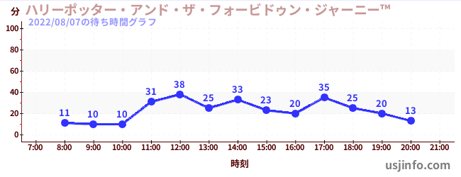 • ハリーポッター・アンド・ザ・フォービドゥン・ジャーニー™$B$N(B2022年08月07日の待ち時間