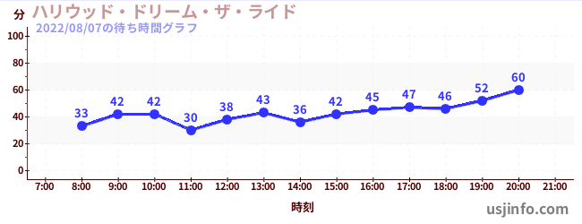 • ハリウッド・ドリーム・ザ・ライド$B$N(B2022年08月07日の待ち時間