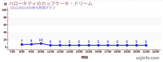 • ハローキティのカップケーキ・ドリーム$B$N(B2022年08月14日の待ち時間