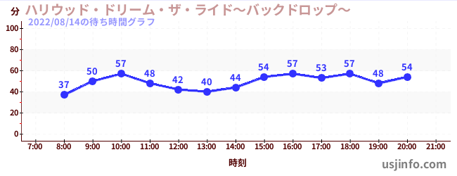 • ハリウッド・ドリーム・ザ・ライド〜バックドロップ〜$B$N(B2022年08月14日の待ち時間
