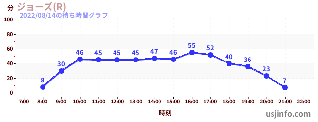 • ジョーズ(R)$B$N(B2022年08月14日の待ち時間