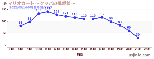 • マリオカート ~クッパの挑戦状~$B$N(B2022年08月14日の待ち時間