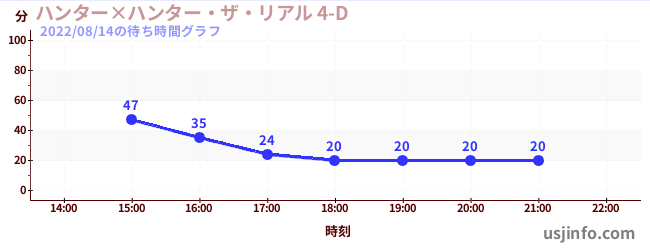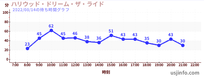 • ハリウッド・ドリーム・ザ・ライド$B$N(B2022年08月14日の待ち時間