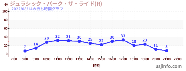• ジュラシック・パーク・ザ・ライド(R)$B$N(B2022年08月14日の待ち時間