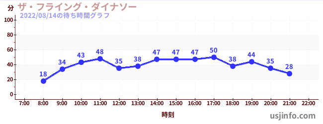 • ザ・フライング・ダイナソー$B$N(B2022年08月14日の待ち時間