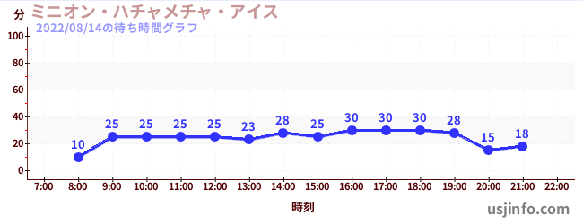 • ミニオン・ハチャメチャ・ライド$B$N(B2022年08月14日の待ち時間
