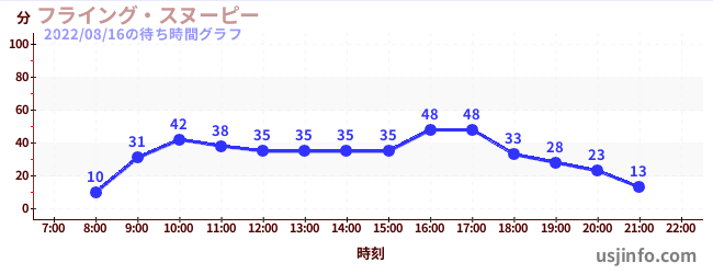 • フライング・スヌーピー$B$N(B2022年08月16日の待ち時間