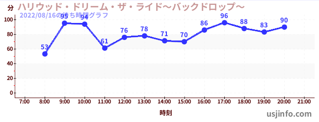 • ハリウッド・ドリーム・ザ・ライド〜バックドロップ〜$B$N(B2022年08月16日の待ち時間