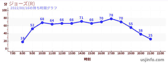 • ジョーズ(R)$B$N(B2022年08月16日の待ち時間