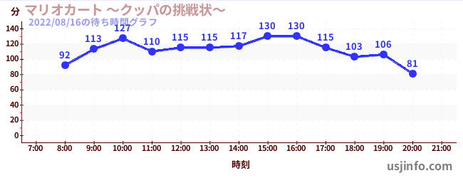 • マリオカート ~クッパの挑戦状~$B$N(B2022年08月16日の待ち時間