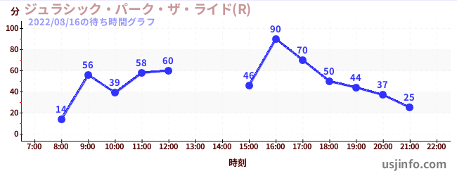 • ジュラシック・パーク・ザ・ライド(R)$B$N(B2022年08月16日の待ち時間