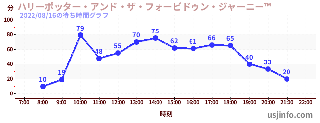 • ハリーポッター・アンド・ザ・フォービドゥン・ジャーニー™$B$N(B2022年08月16日の待ち時間