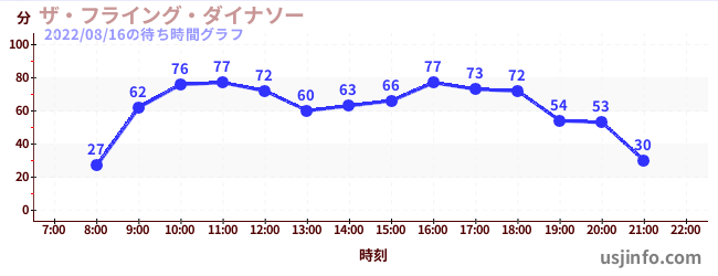 • ザ・フライング・ダイナソー$B$N(B2022年08月16日の待ち時間