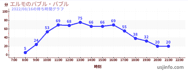 • エルモのバブル・バブル$B$N(B2022年08月16日の待ち時間