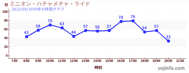 • ミニオン・ハチャメチャ・ライド$B$N(B2022年08月16日の待ち時間