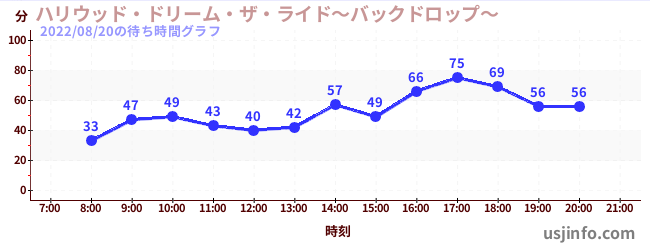 • ハリウッド・ドリーム・ザ・ライド〜バックドロップ〜$B$N(B2022年08月20日の待ち時間